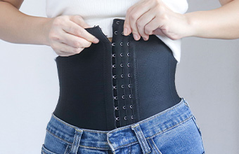 術後は専用のコルセットで固定を行います。形状を維持するための大切な工程です。